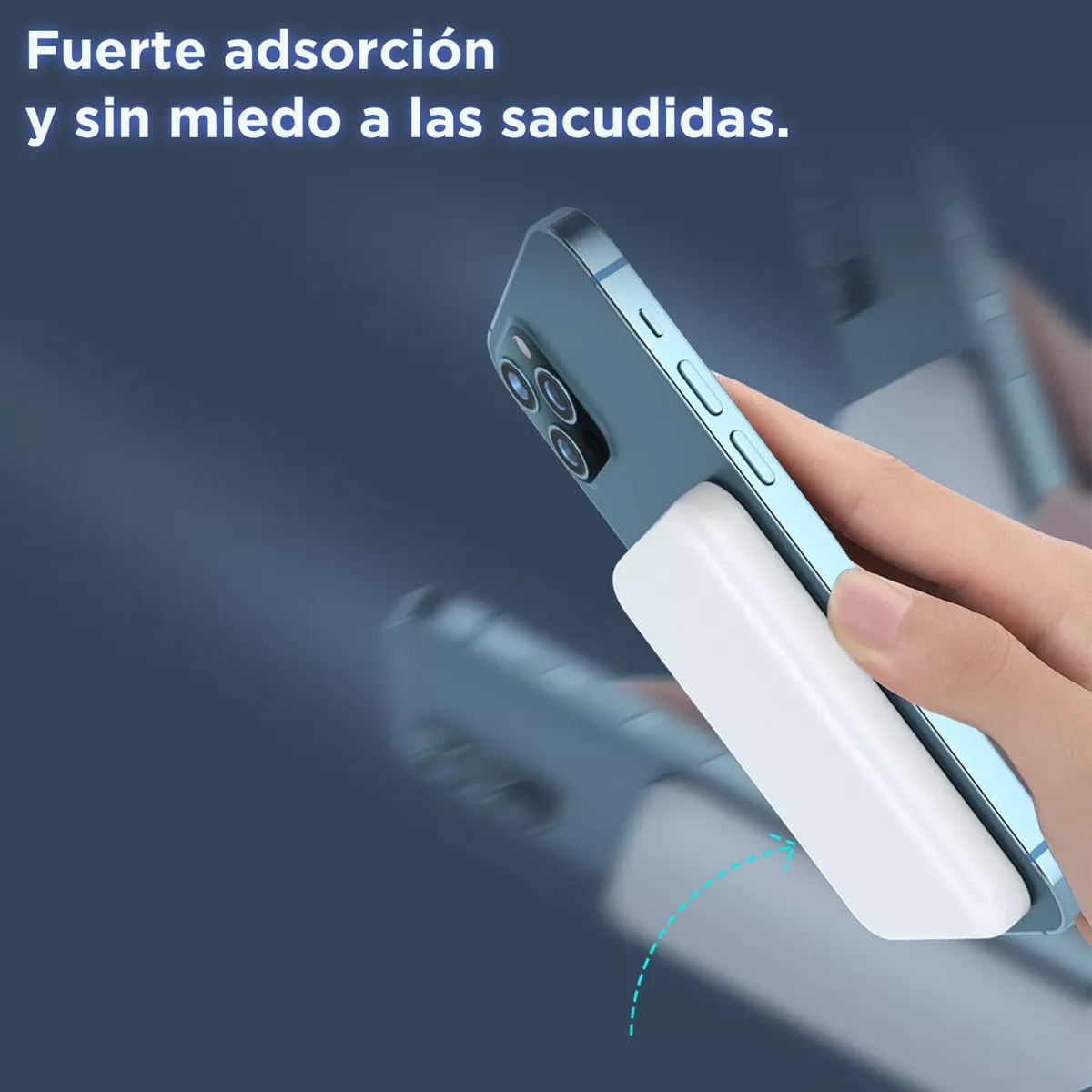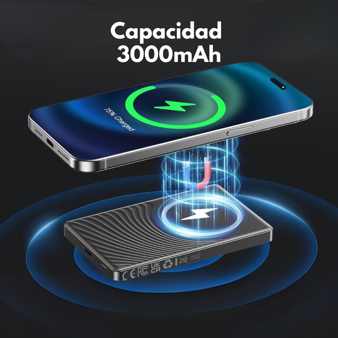 Diseño Magnético: Se adhiere fácilmente a la parte trasera de tu teléfono (compatible con el sistema magnético), manteniéndose firme mientras se recarga.