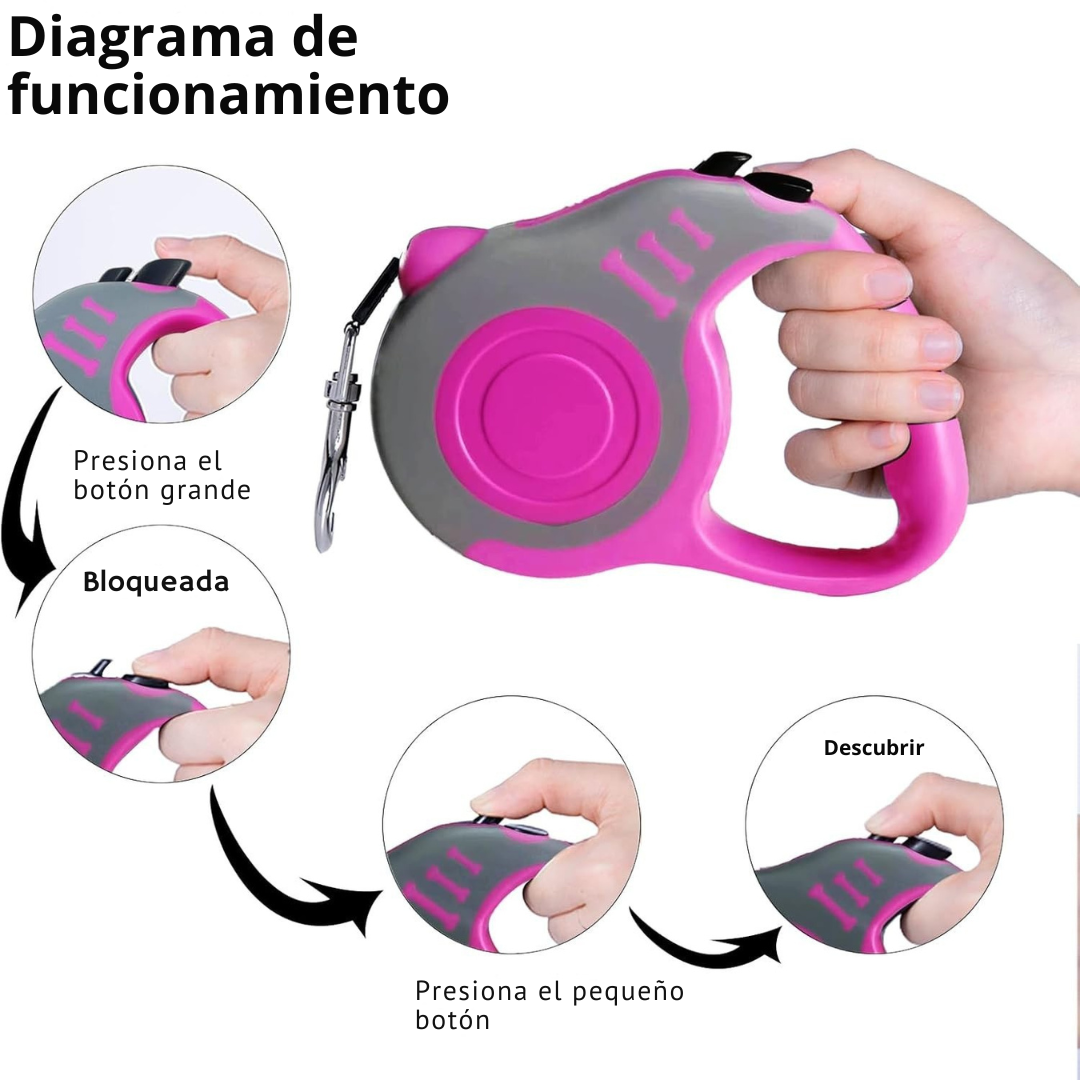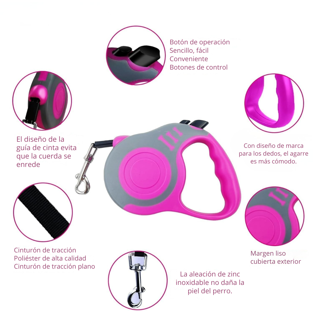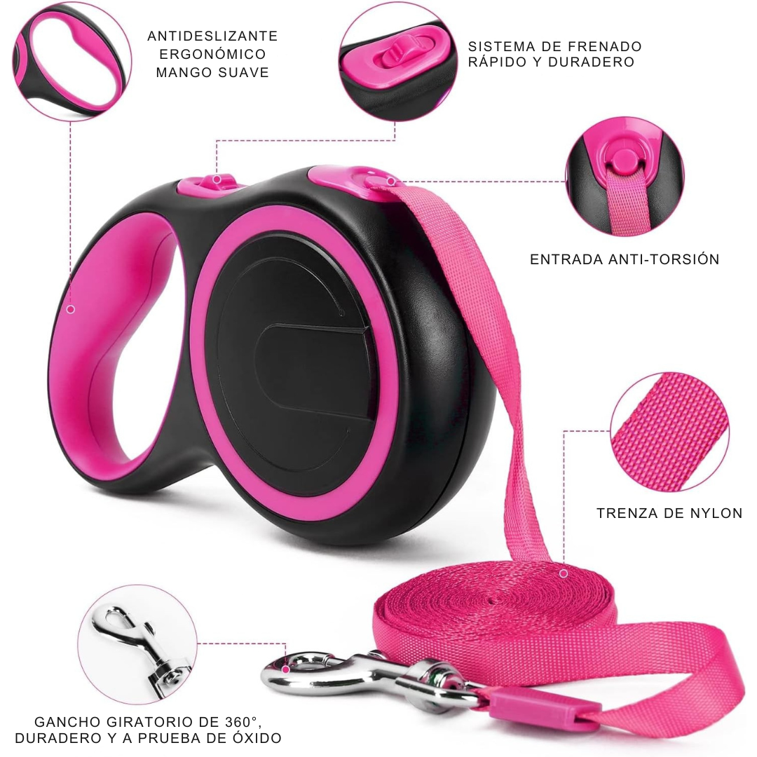 🦮 Mayor control y libertad: El sistema retráctil de 3 m permite a tu mascota explorar sin perder el control.