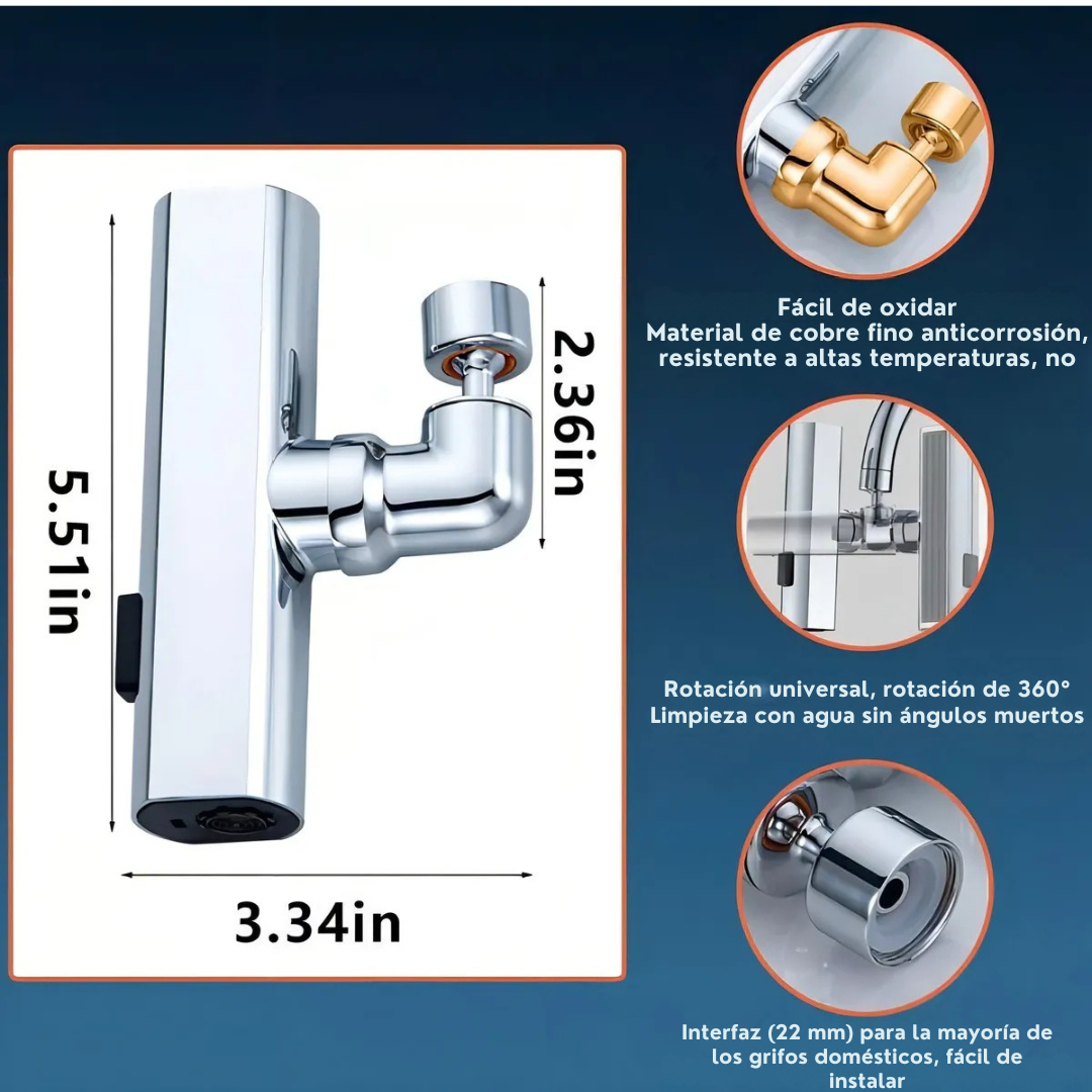 🔄 Rotación completa de 360° para llegar a cada rincón del lavaplatos sin esfuerzo.