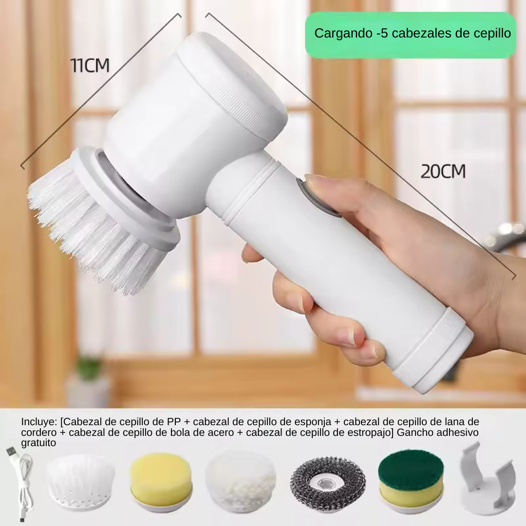 🔄 Accesorios incluidos: 5 cabezales intercambiables (cepillo duro, cepillo suave, esponja, cabezal plano, cabezal en punta)