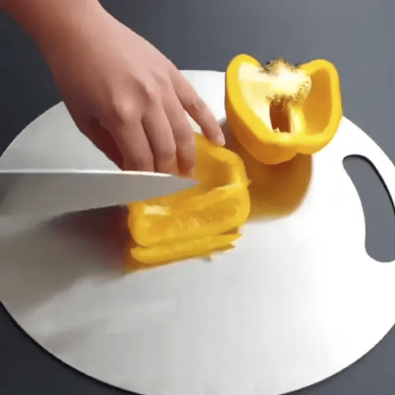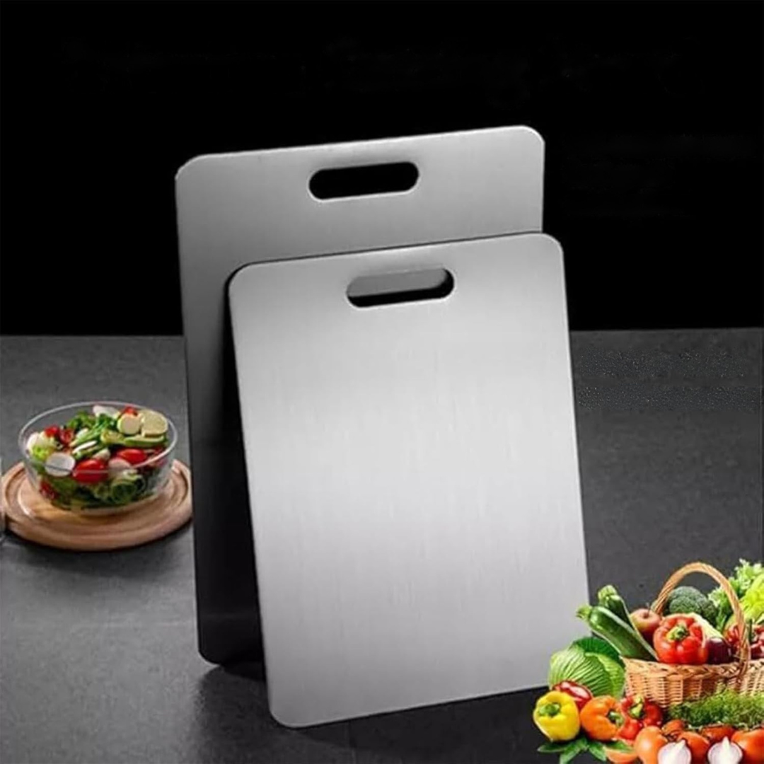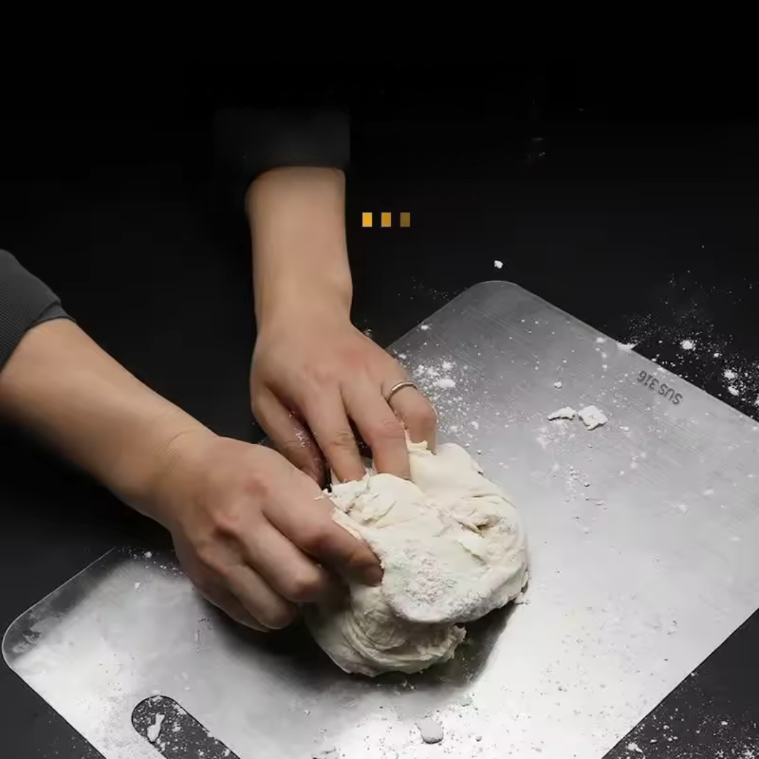 ✨ Con SteelChef® tendrás una tabla de acero inoxidable resistente y fácil de limpiar, pensada para quienes buscan higiene y durabilidad en la cocina.