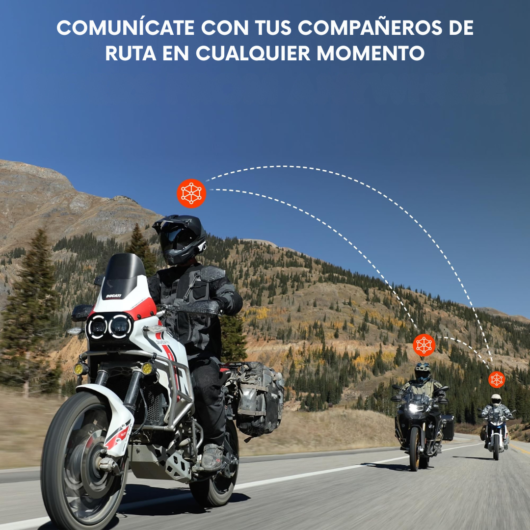 📡 Alcance amplio → para mantenerte en contacto incluso con distancia entre motos.